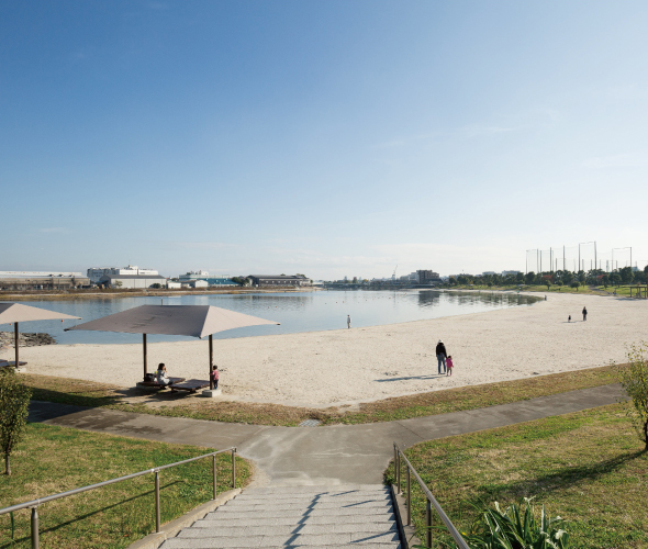 第一京浜の東側には広大な公園やスポーツ施設が点在。朝のジョギングを楽しんだり、週末は四季折々の自然の中で散策したり、友人とテニスで汗を流したり、手軽に心身をリフレッシュ。湾岸の爽やかな空気に触れていると、日々のストレスもいつのまにかやわらいでいます。